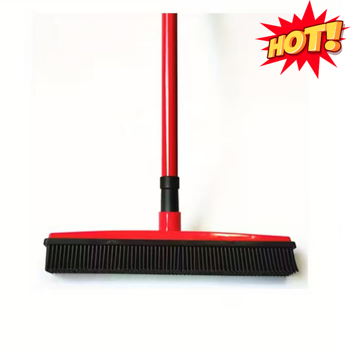 Answer 1: The product features specially designed rubber bristles that attract and hold onto pet hair, ensuring that surfaces are free from stubborn fur after each sweep without any missed spots.